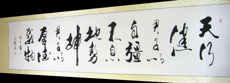 第一字画网的天行健书法天行健君子以自强不息。适合挂在家里的客厅或书房,也可以挂在公司等办公室场合,这幅书法是山东书法家协会福利老师的书法作品,装裱后长度约在1.8米左右,作品笔法老练,如果放在画廊出售,福利老师此副天行健书法裱完后的标价大约在1000元左右。