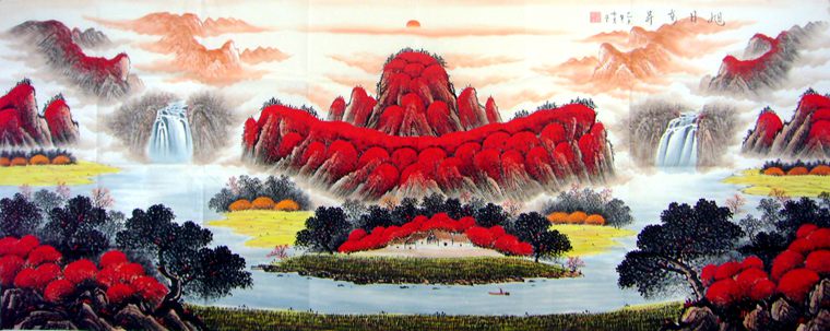 第一字画网的国画旭日东升,小八尺作品裱完后长度近3米左右,是一幅大气磅礴的山水作品,适合挂在客厅或是公司的会议室等场合,作品意境生动、山水交汇、细节出色,后侧的红日寓意着旭日东升。如果放在画廊出售,王咏茗老师此幅国画旭日东升的标价在9000元左右。