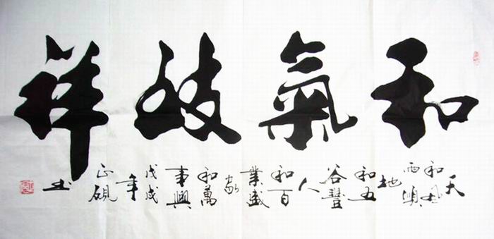 • 产品简介: 书法和气致祥,广西书法家甘正砚四尺作品,已装裱。意思是对人谦和可以带来吉祥。 出处: 东汉·班固《汉书·刘向传》:“和气致祥,乖气致异。”