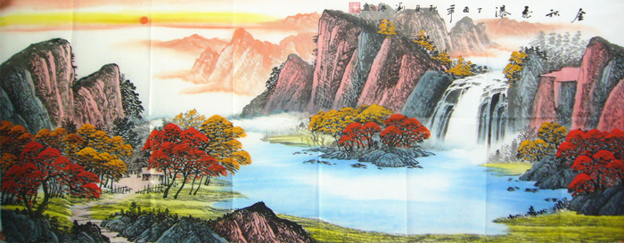 第一字画网的国画山水作品《金秋飞瀑》装裱以后在2.2米左右,是一幅大气磅礴的小六尺山水,作品意境生动、山水交汇,清新秀雅,布局合理,视觉效果上佳,看作品的气势、云层和山脉的细节,就能看出老师的深厚画功,画面上的红日寓意着鸿运高照,如果放在画廊出售,刘淋老师此幅山水画的标价在5000元左右,作品的气势和画功都是一流的,适合挂在客厅、或公司的会议室等场合。
