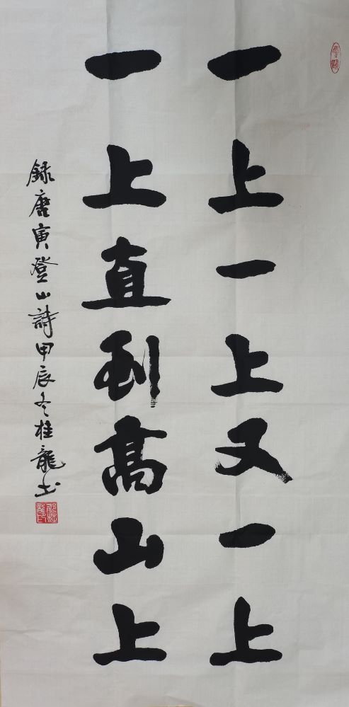 第一字画网的名家书法对联,适合挂在家里的客厅或是书房,这幅行书书法作品是湖北书法家郁桂龙老师的作品,装裱后长度约在1.8米左右,作品笔法老练,如果放在画廊出售,桂龙老师此幅毛笔书法办公室字画的标价大约在1500元左右。